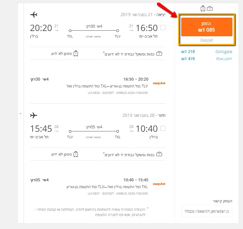 9 – כאן תוכלו לראות את כל המסלול של הטיסה שתרצו להזמין, הכולל: המראות ונחיתות בנמל תעופה, קיימת עצירה, מטען המותר ועוד.