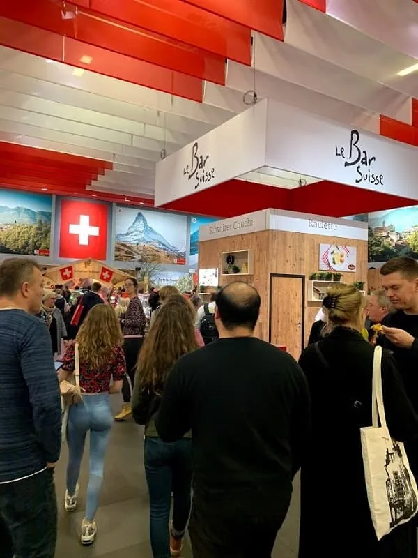 הדוכן השוויצרי היה ממוקם בחלל רחב נקי ומסודר, וניתן היה לטעום פונדו גבינות, וגם לרכוש את הערכה להכנתו.